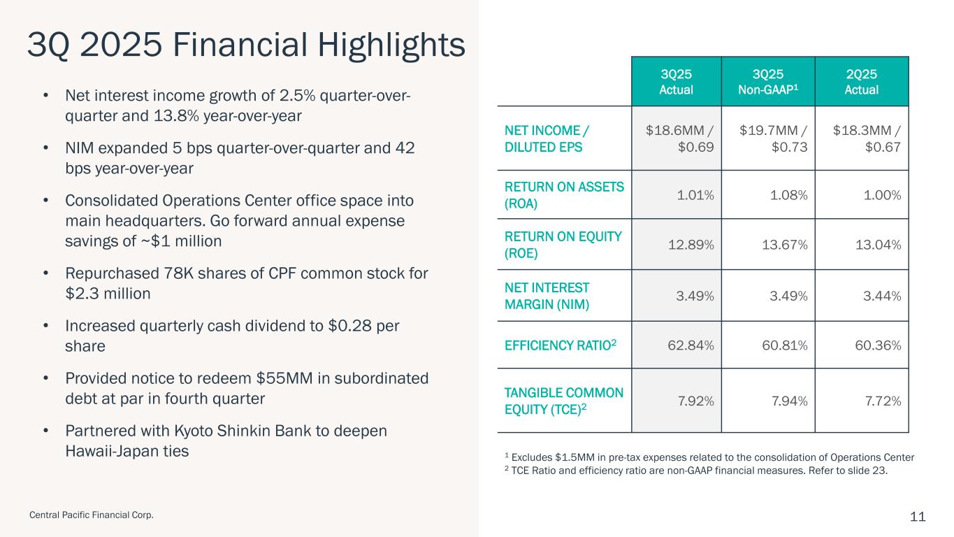 10Central Pacific Financial Corp. 3Q 2025 Financial Results