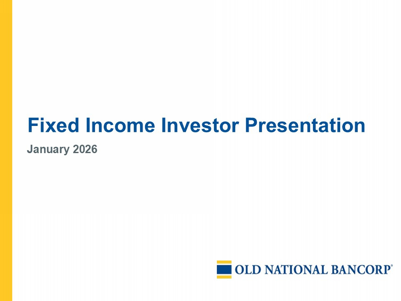 Fixed Income Investor Presentation January 2026