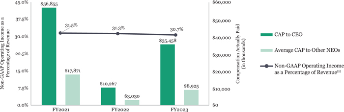 The compensation and human resources committee has elected to use non-GAAP operating income as a percentage of revenue, in connection with assessing and making determinations related to executive compensation matters. Non-GAAP operating income as a percentage of revenue is determined by dividing non-GAAP operating income, which is a non-GAAP financial measure, by revenue, which is a GAAP financial measure. The GAAP measure most directly comparable to non-GAAP operating income is GAAP operating income. Non-GAAP operating income includes adjustments to the most comparable GAAP financial measure, GAAP operating income, to exclude the impact of certain items as further indicated below.