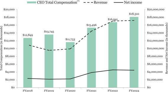 At this year’s annual meeting, stockholders will be asked to elect the eleven nominees named in the attached proxy statement as directors to serve until the next annual meeting of stockholders, and until their respective successors are elected and qualified; to cast an advisory vote to approve our named executive officer compensation; to cast an advisory vote to approve the frequency of holding future stockholder advisory votes on our named executive officer compensation; and to ratify the appointment of Ernst & Young LLP as our independent registered public accounting firm for fiscal year 2024. The Board of Directors recommends that you vote in favor of each director nominee; for future stockholder advisory votes on our named executive officer compensation at a frequency of every one year; and for each of these other proposals. Management will not provide a business update during this meeting; please refer to our latest quarterly earnings report for our most recently-provided outlook.