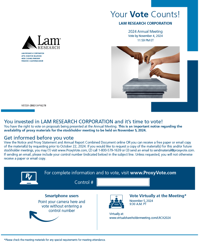 You invested in LAM RESEARCH CORPORATION and it’s time to vote!