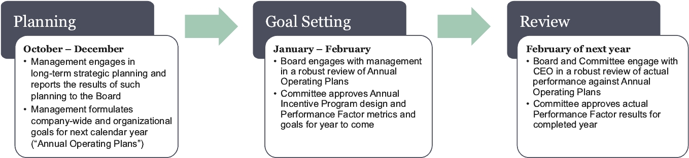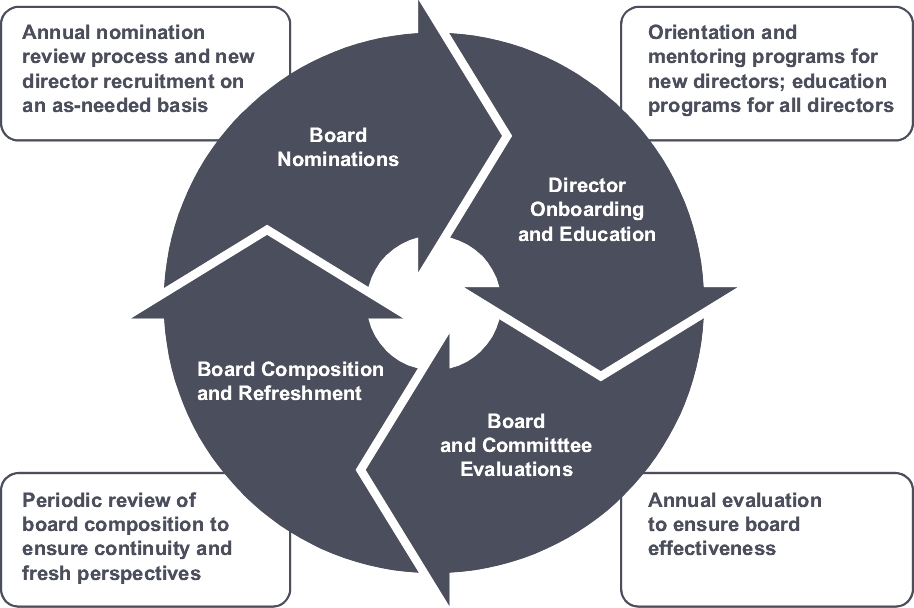 Our governance framework for environmental, social and governance matters is illustrated in Figure 16 below. While our Board is actively engaged in the overall oversight of these matters, the nominating and governance committee has the primary responsibility for oversight of our priorities related to environmental, social and governance matters. For human capital and workforce-related issues, the compensation and human resources committee holds oversight responsibility. The audit committee is responsible for oversight of ethics and compliance and information security. Our executive leadership provides regular updates to the Board and its committees and engages them to discuss strategy, gain alignment on goals, and report on progress. Our CEO and members of the