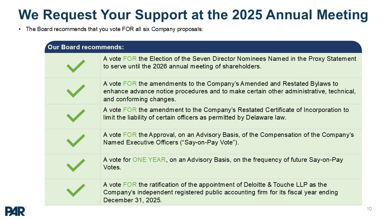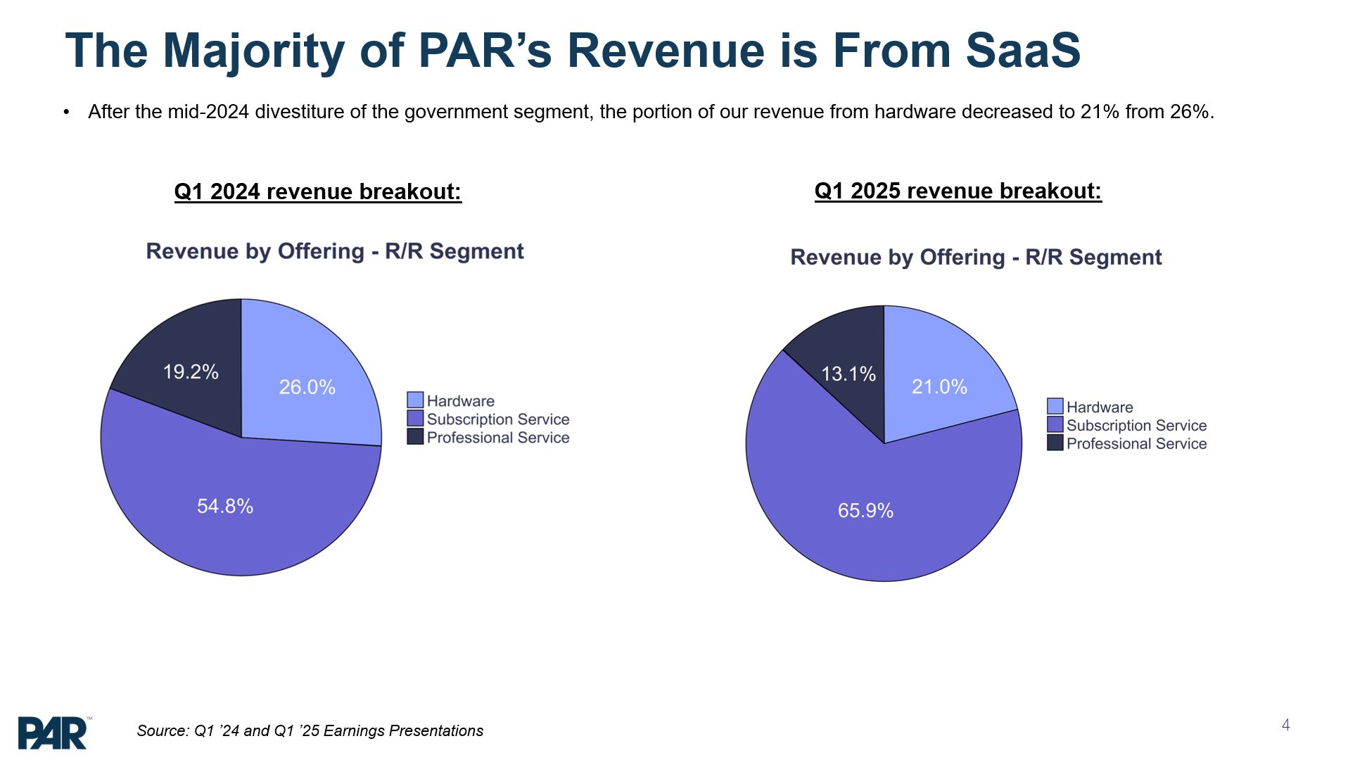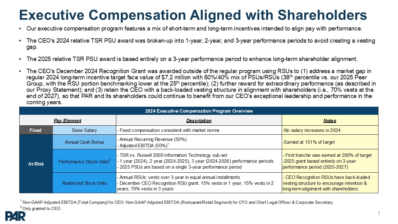 delivering superior performance to our shareholders PAR Technology Corporation (“PAR”) has evolved to become a SaaS focused company. PAR’s SaaS software comprises 66% of its revenues (as of Q1’25), up from 27% in 2022 PAR’s total