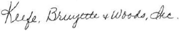 CONSENT OF KEEFE, BRUYETTE & WOODS, INC.