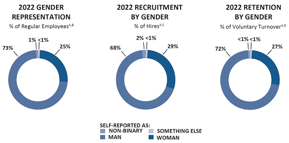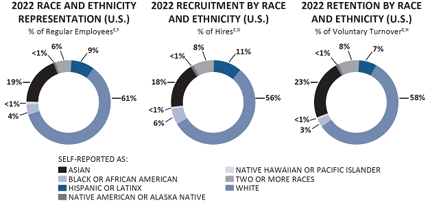 A summary of our employee population, retention, and recruitment numbers, as reported in our 2022 DE&I Look-Back, is provided below3:
