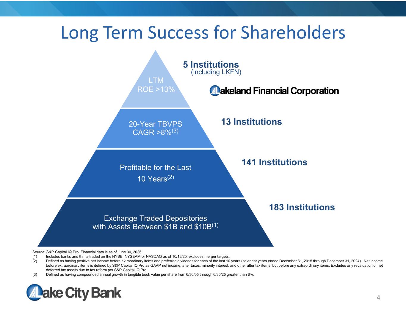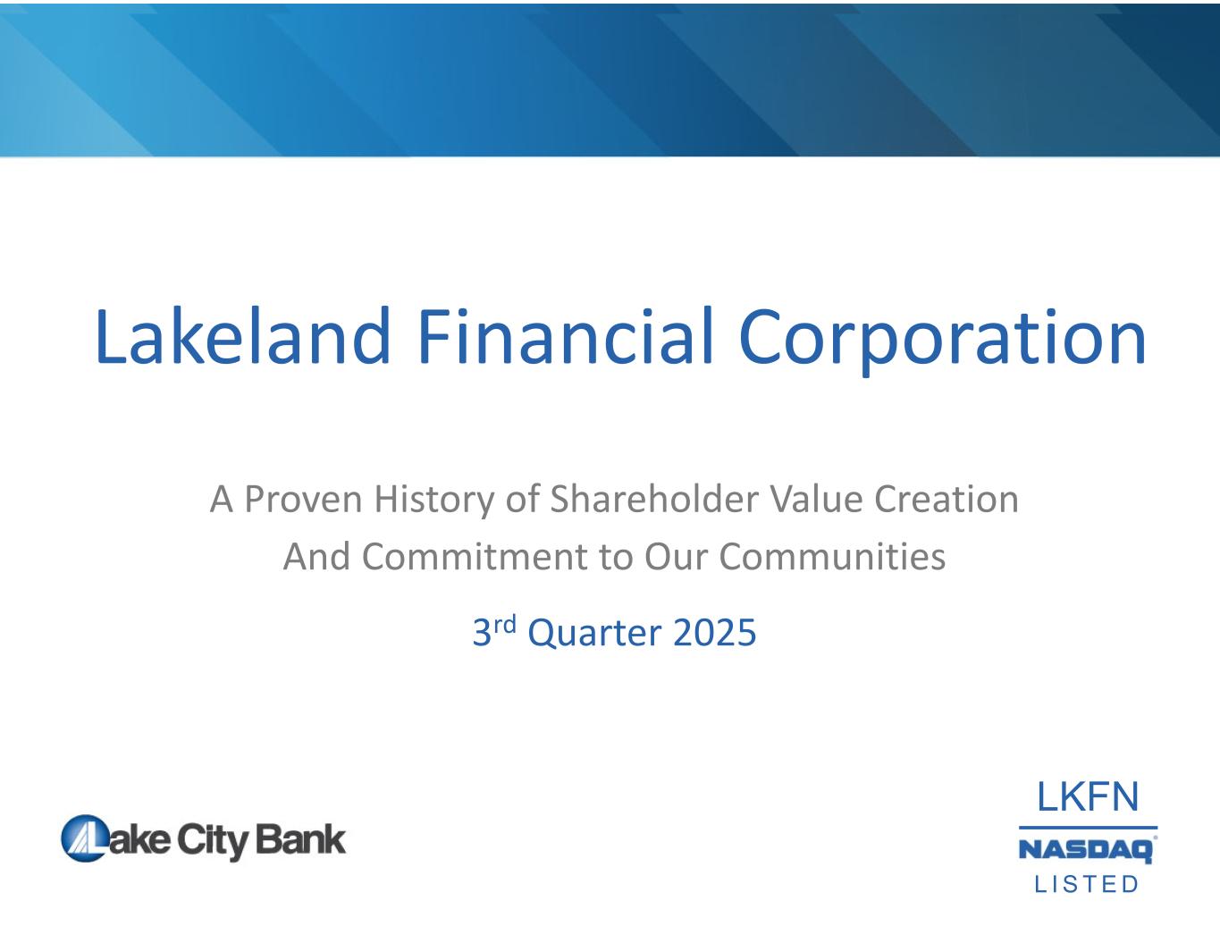 Lakeland Financial Corporation A Proven History of Shareholder Value Creation And Commitment to Our Communities 3rd Quarter 2025 LKFN L I S T E D