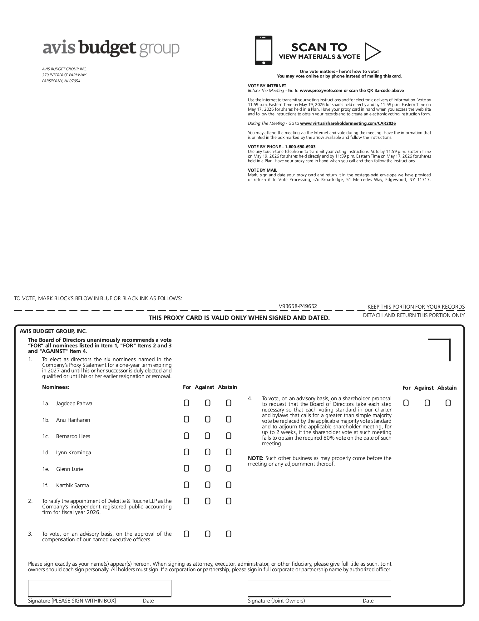 Our executive stock ownership guidelines require NEOs to acquire and hold designated levels of Avis Budget Common Stock. Under these guidelines, our CEO is required to retain 100%, and other NEOs are required to retain a minimum of 50%, of the net shares (net of taxes) obtained upon the vesting of restricted stock awards and of vested stock options (if applicable), until reaching the following specified ownership thresholds: