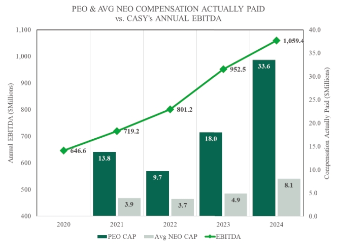 | | ![]() | | | Darren M. Rebelez President and CEO | | | What We Do – Best Practices ✔ Strong pay for performance ✔ Incentive pay with multiple metrics tied to long-term shareholder value ✔ Meaningful stock ownership requirements for officers ✔ Double-trigger change of control provisions ✔ Independent compensation consultant ✔ Annual “say on pay” vote What We Don’t Do ☒ No guaranteed incentive payments ☒ No uncapped incentive compensation opportunities ☒ No hedging or pledging of Company stock ☒ No tax gross-ups ☒ No excessive benefits or perquisites ☒ No single-trigger change of control provisions “Say on Pay” Results: 2021: 97.9%, 2022: 97.0%, 2023: 97.6% ⯀ Pay program in FY24 was substantially the same as FY23, which as noted, our shareholders overwhelmingly supported | |