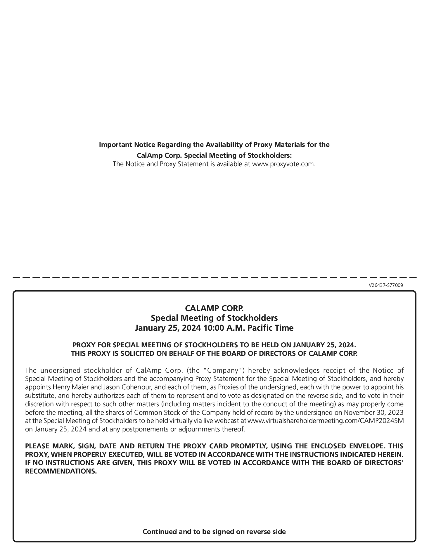 If you require assistance or have any questions regarding the proxy statement, please email IR@calamp.com.