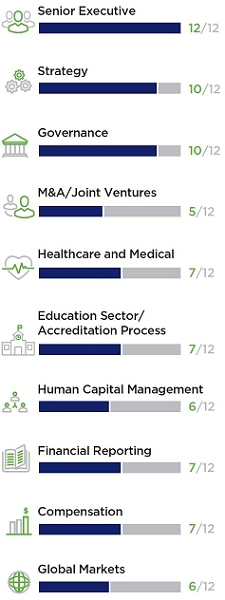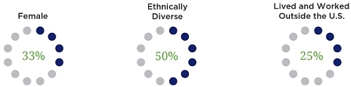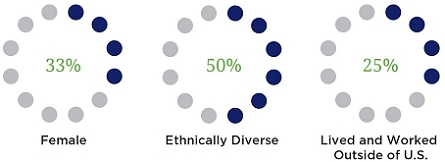 Diverse mix of backgrounds, current and former CEOs, marketing and medical professionals, and a former finance executive at a leading global company.