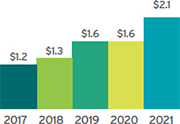| • | Total deposits were $8.1 billion as of December 31, 2021, an increase of $1.1 billion, or 16 percent, from the prior year. Transaction accounts increased 29 percent year over year and at December 31, 2021, represented 62 percent of overall deposit funding. |