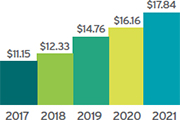 Seacoast continued to drive positive momentum in performance metrics, leading to sustained performance and value creation for our shareholders. For the year ended December 31, 2021, the Company reported $124.4 million in net income, or $2.18 per share, increasing 60% from prior year. Net revenue for the same period was $346.8 million, an increase of 7% year-over-year. The Company continued to see positive performance reflected in its ratios, with a return on average tangible assets of 1.41%, return on average tangible shareholders’ equity of 13.3% and an efficiency ratio of 55.4%. On an adjusted basis, the Company reported $135.0 million in adjusted net income1, or $2.36 per share1. Adjusted net revenues were $346.6 million, an increase of 7% year-over-year. Adjusted return on tangible assets1 was 1.48%, adjusted return on tangible equity1 was 14.0% and the adjusted efficiency ratio1 was 52.6%. The Company continues to build shareholder value, reflected in our tangible book value of $17.84, an increase of 10% year-over-year and a compounded annual growth rate of 12% since 2017.