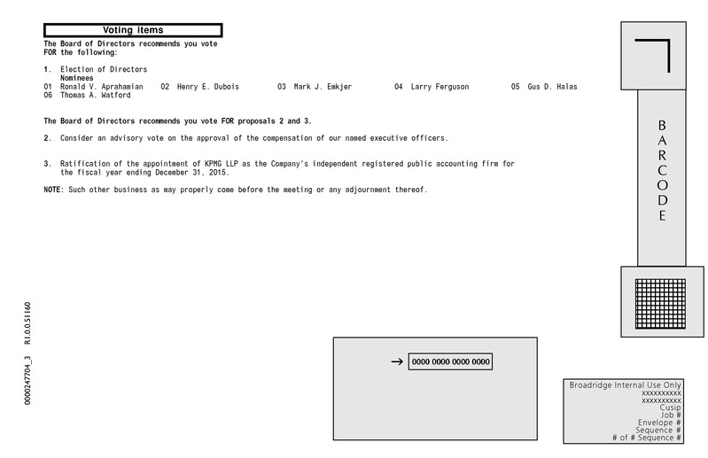 3. | To ratify the appointment of KPMG LLP as the Company’s independent registered public accounting firm for the fiscal year ending December 31, 2015. |