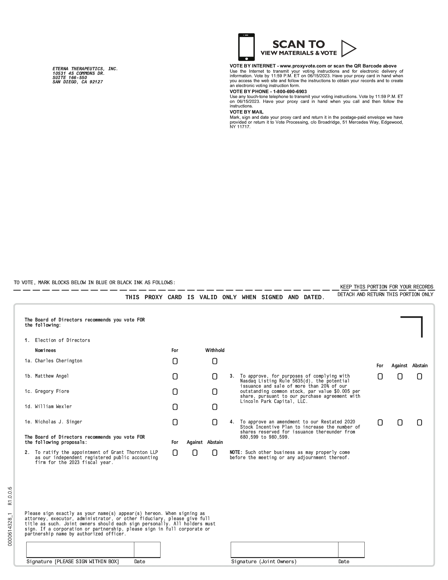 Eterna does not maintain any nonqualified deferred compensation plan We do not maintain any nonqualified deferred compensation plans.