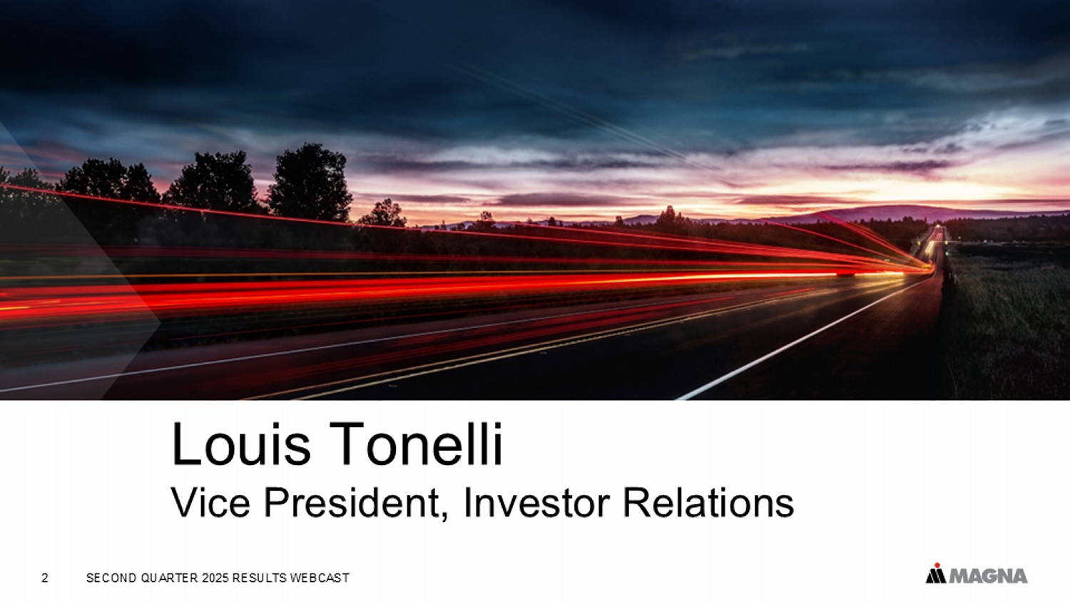 SECOND QUARTER 2025 RESULTS WEBCAST 2 Vice President, Investor Relations Louis Tonelli
