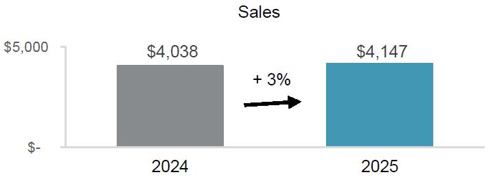 Sales increased 2%, or $182 million, to $10.46 billion for the third quarter of 2025 compared to $10.28 billion for the third quarter of 2024 primarily due to: