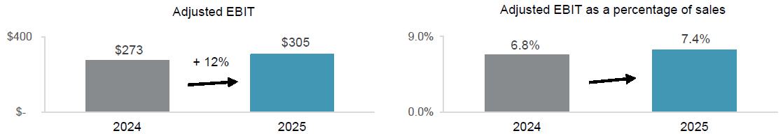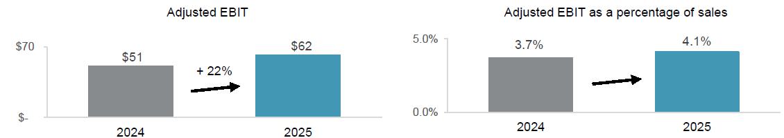 | · | Adjusted EBIT as a percentage of sales(1) increased 10 basis points to 5.9%. |