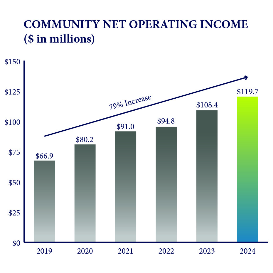 | ● | Increased Community Net Operating Income (“NOI”) by 10%. | |