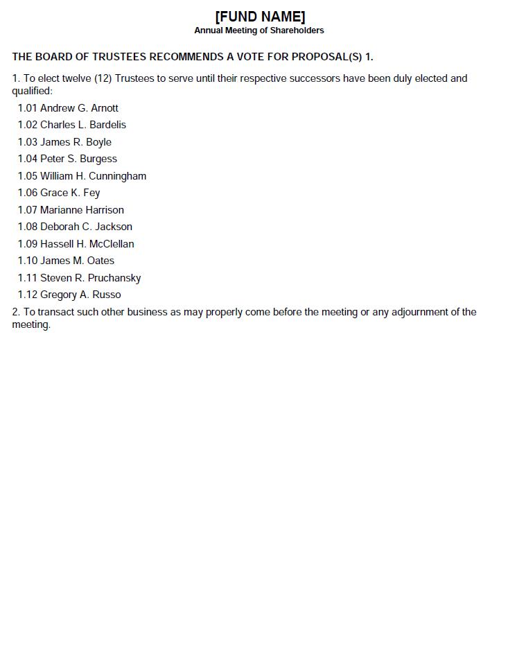 Proposal 1: To elect twelve (12) Trustees to serve until their respective successors have been duly elected and qualified (all funds).