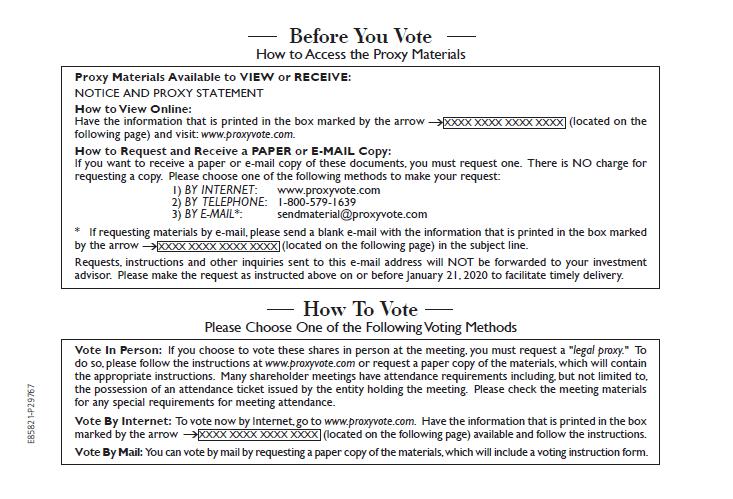 Important Notice Regarding the Availability of Proxy Materials for the Shareholder Meeting to Be Held on February 3, 2020.