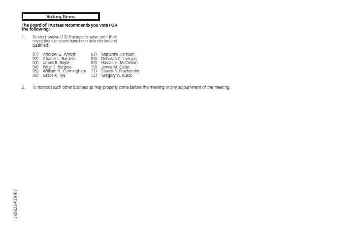 The Board of Trustees recommends that you vote in favor of the election of each of the twelve (12) Nominees.