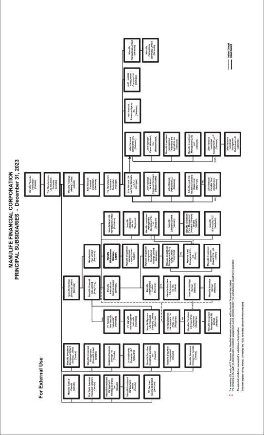 John Hancock Investment Management LLC (the “Advisor”) is the investment advisor to the Fund. The Advisor is a an indirect principally owned subsidiary of John Hancock Life Insurance Company (U.S.A.), which in turn is a subsidiary of Manulife Financial Corporation (“Manulife Financial”), a publicly traded company based in Toronto, Canada. A corporate organization list is set forth below.