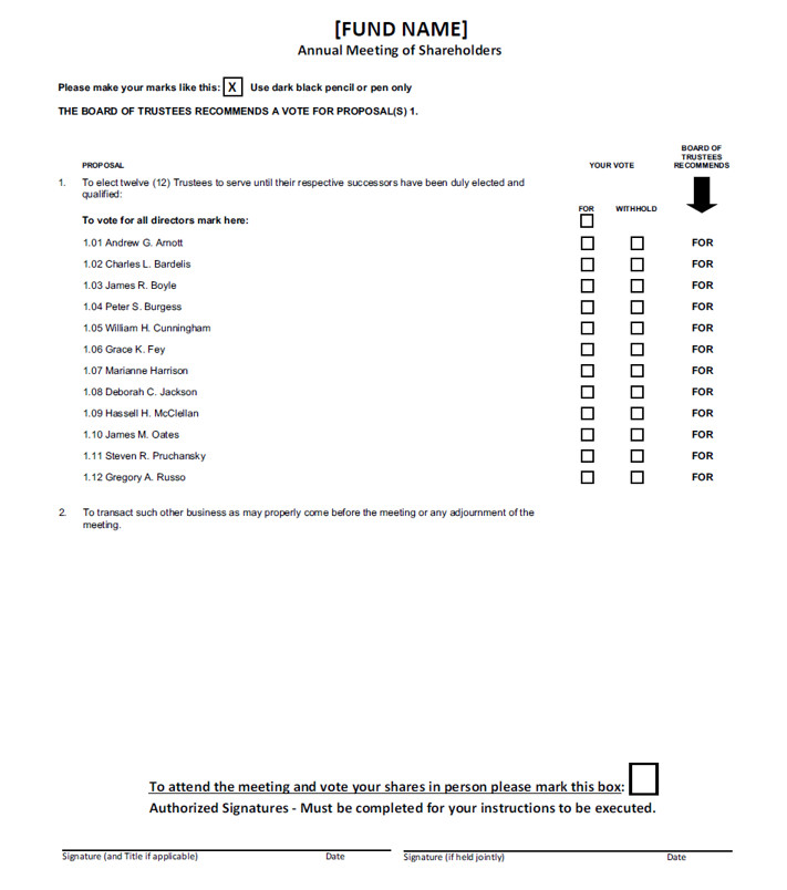 The Board of Trustees recommends that you vote in favor of the election of each of the twelve (12) Nominees.