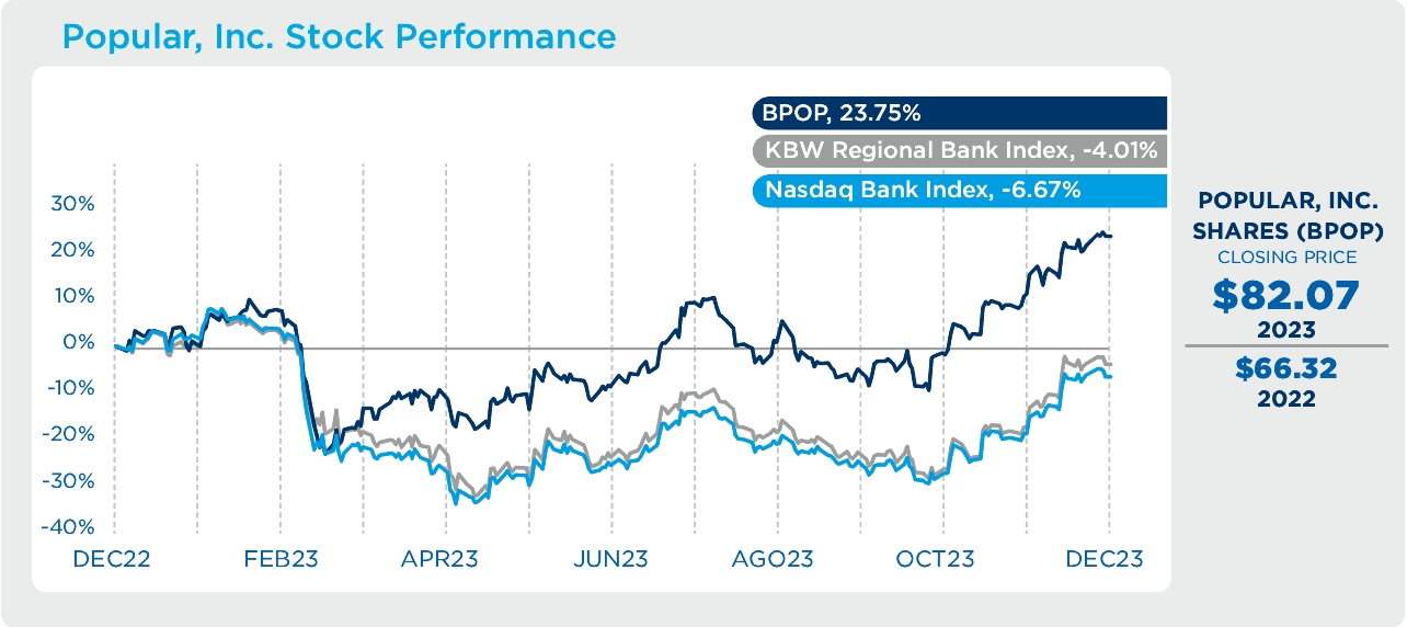 Popular’s GAAP Net income for 2023 was approximately $541.3 million, compared to