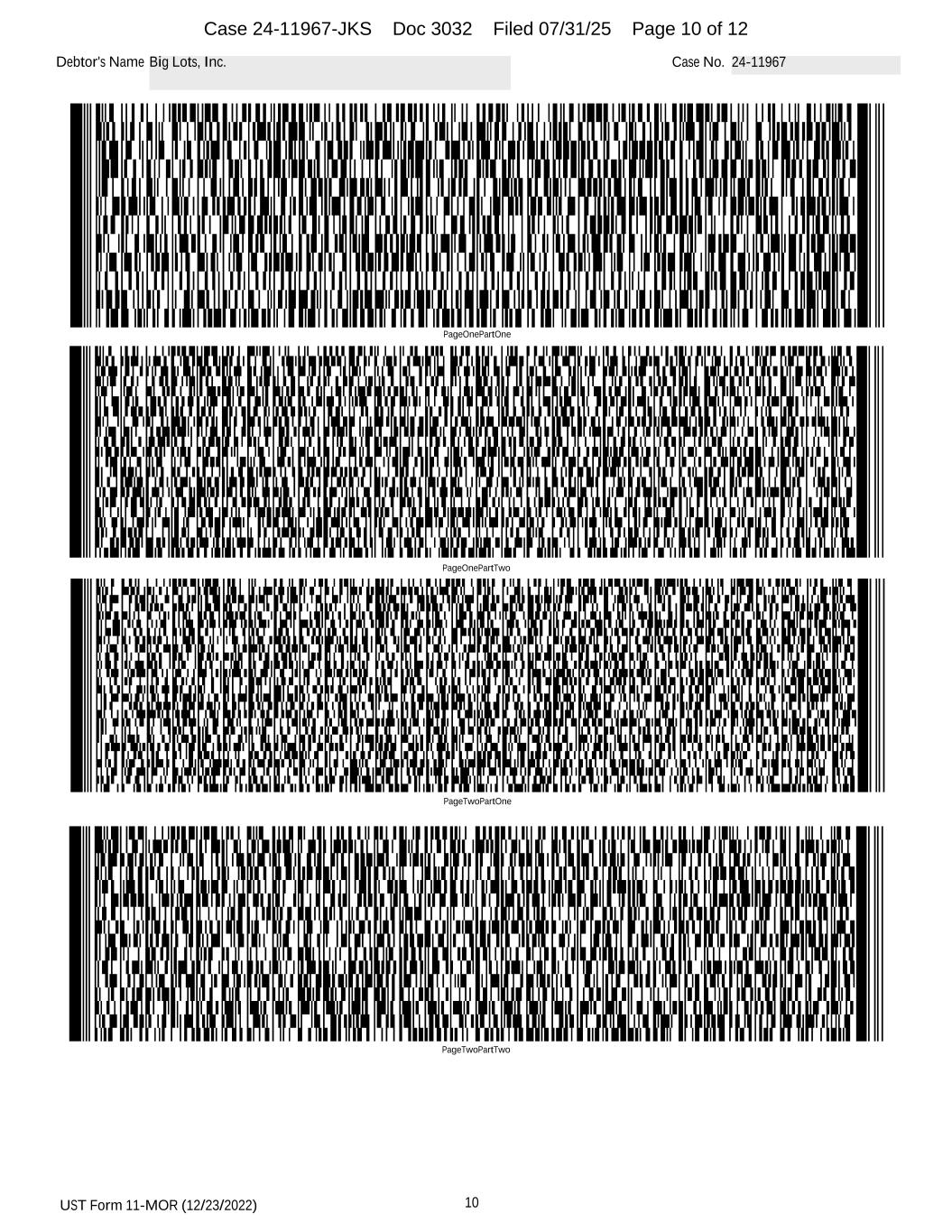 UST Form 11-MOR (12/23/2022) 10 Debtor's Name Big Lots, Inc. Case No. 24-11967 PageOnePartOne PageOnePartTwo PageTwoPartOne PageTwoPartTwo Case 24-11967-JKS Doc 3032 Filed 07/31/25 Page 10 of 12