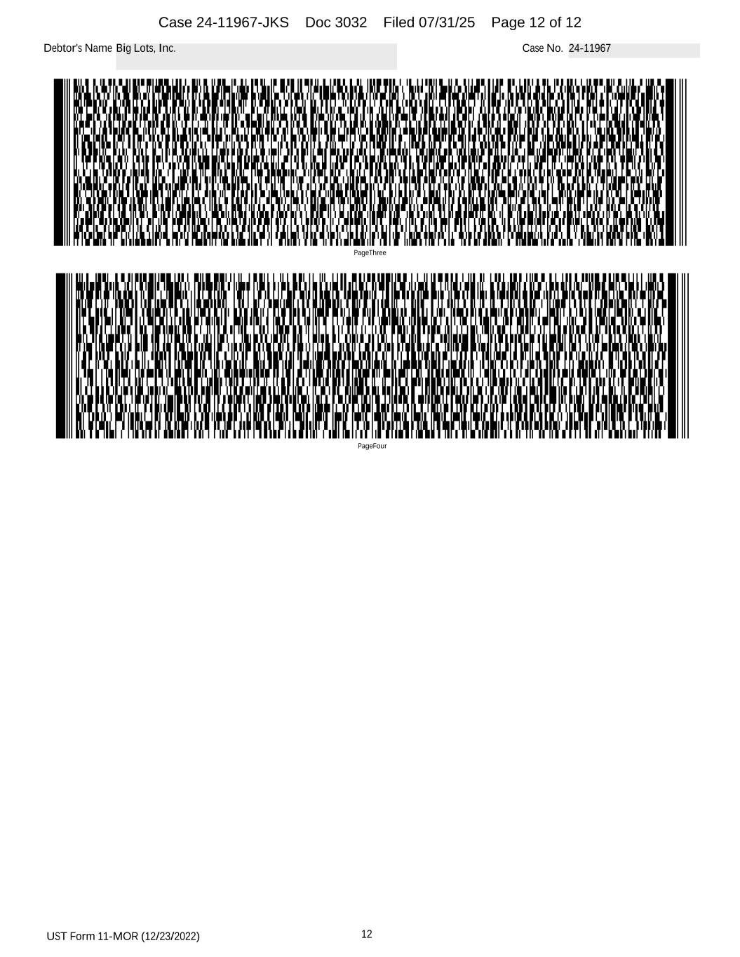 UST Form 11-MOR (12/23/2022) 12 Debtor's Name Big Lots, Inc. Case No. 24-11967 PageFour PageThree Case 24-11967-JKS Doc 3032 Filed 07/31/25 Page 12 of 12