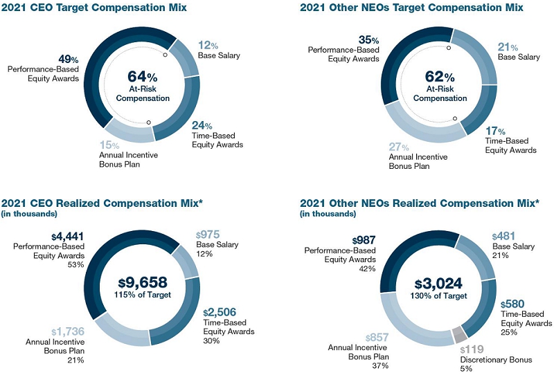 We implemented a newly designed annual performance-based cash compensation plan in 2021 with differentiated metrics and performance periods in response to stockholder feedback.