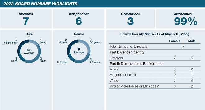 | 1. | To elect seven directors to hold office until the 2023 Annual Meeting. |