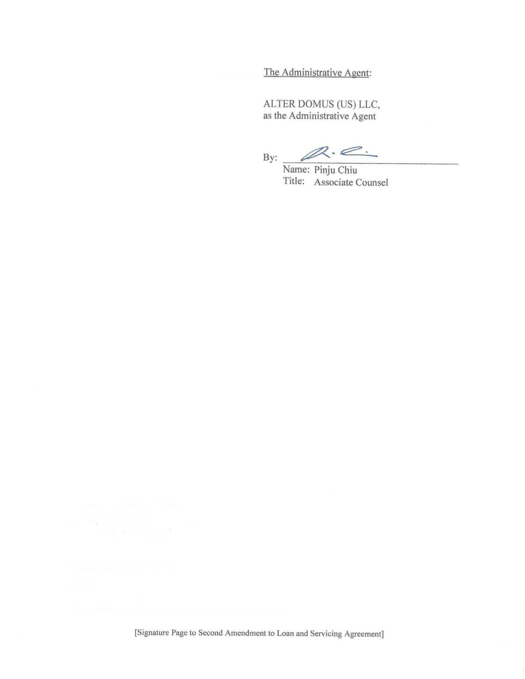 [Signature Page to Second Amendment to Loan and Servicing Agreement] Initial Lender: MASSACHUSETTS MUTUAL LIFE INSURANCE COMPANY, as the Initial Lender By: Barings LLC, its Investment Adviser By: ____________________________________ Name: Title: Shubham Chandna Managing Director