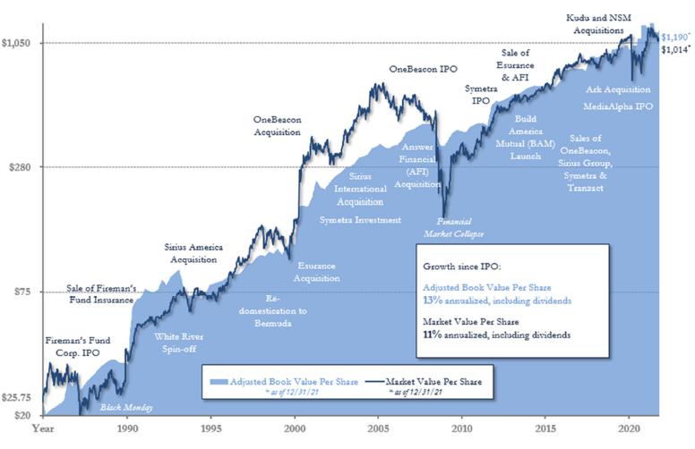 We finished 2021 with book value per share of $1,176 and adjusted book value per share of $1,190, decreases of 7% and 6% from the prior year, respectively. Excluding the mark-to-market decline in our investment in MediaAlpha, adjusted book value per share increased 4% for the year, reflecting positive results from our operating businesses.