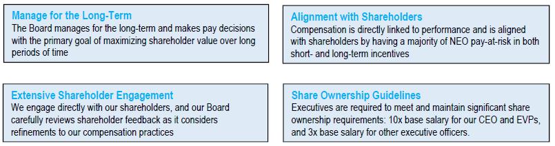 We urge you to read the Compensation Discussion & Analysis, beginning on page 25 of this proxy statement, as well as the 2021 summary compensation table and related compensation tables and narrative, beginning on page 40, which provide detailed information on the Company’s compensation policies and practices and the compensation of our named executive officers.