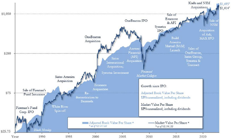 2022 was an excellent year for your Company. We finished 2022 with book value per share of $1,457 and adjusted book value per share of $1,495, increases of 24% and 26% for the year, respectively. Total shareholder return was 40% in 2022, compared to -18% for the S&P 500 and 19% for the S&P 500 P&C Insurance Index. The successful sale of NSM in August was the main driver, generating a net gain of $876 million, adding roughly $300 to adjusted book value per share.