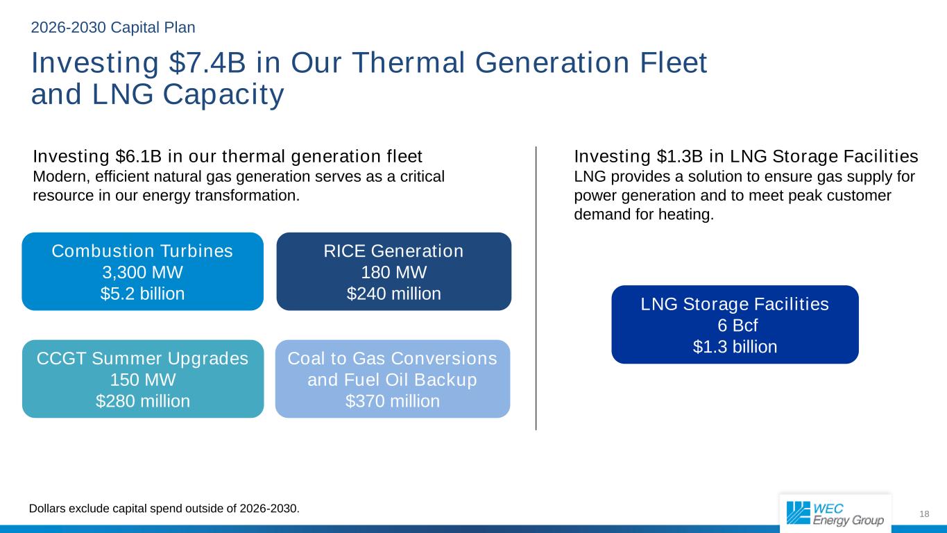 17 Solar Total 3,700 MW $7.6 billion Battery Storage Total 1,780 MW $2.2 billion Wind Total 555 MW $1.8 billion Grand Total 6,035 MW $11.6 billion Investing $11.6 Billion in Regulated Renewables 2026-2030 Capital Plan Dollars exclude capital spend outside of 2026-2030.