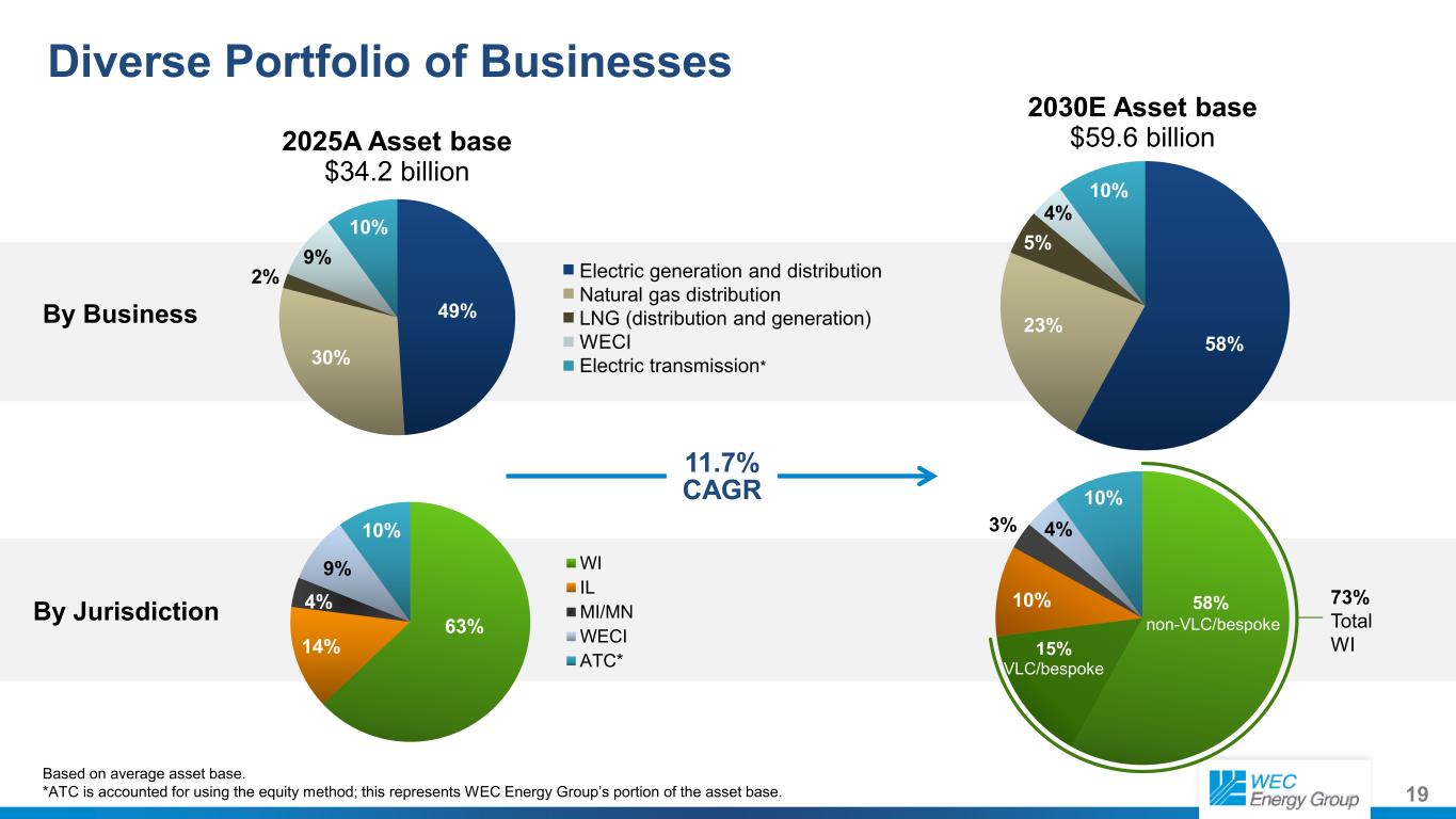 18 $37.5 Billion Projected Capital Spend From 2026-2030 Capital Plan Drives EPS Growth Depreciation at utilities expected to average $1.6 billion annually, and $190 million at ATC, over 2026-2030 period *ATC is accounted for using the equity method; this represents WEC Energy Group’s portion of the investment. ** Includes all gas utilities and Bluewater. 2,581 4,311 4,412 4,583 4,348 178 82 112 326 623 972 946 973 805 1,025 1,287 1,611 1,469 1,336 1,378 657 802 886 896 901 $5,675 $7,752 $7,852 $7,946 $8,275 - 1,000 2,000 3,000 4,000 5,000 6,000 7,000 8,000 9,000 10,000 2026 2027 2028 2029 2030 Electric Transmission (ATC)* Gas Distribution** Electric Distribution WI LNG Capacity Electric Generation