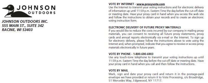 JOHNSON OUTDOORS INC. 555 MAIN ST., SUITE 342 RACINE, WI 53403 VOTE