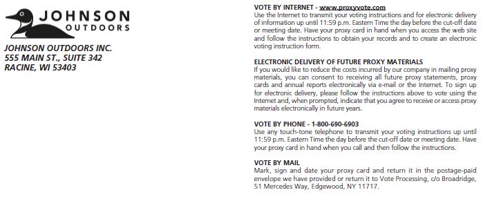 or (2) via email to: proxy@johnsonoutdoors.com.