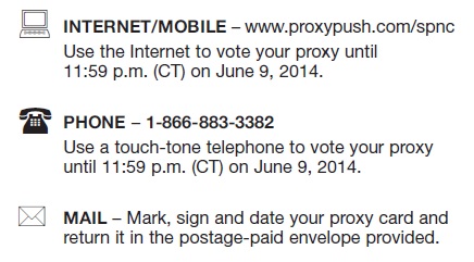 Voting By Telephone Or Through The Internet. If you are a registered stockholder (that is, if you own common stock in your own name and not through a broker, bank or other nominee that holds common stock for your account in a “street name” capacity), you may vote by proxy by using either the telephone or Internet methods of voting. Proxies submitted by telephone or through the Internet must be received by 11:59 p.m., Central Time, on June 9, 2014. Please see below and in the proxy card provided to you for instructions on how to access the telephone and Internet voting systems. If your shares of common stock are held in “street name” for your account, contact your broker, bank or other nominee to determine if you may vote by telephone or through the Internet.