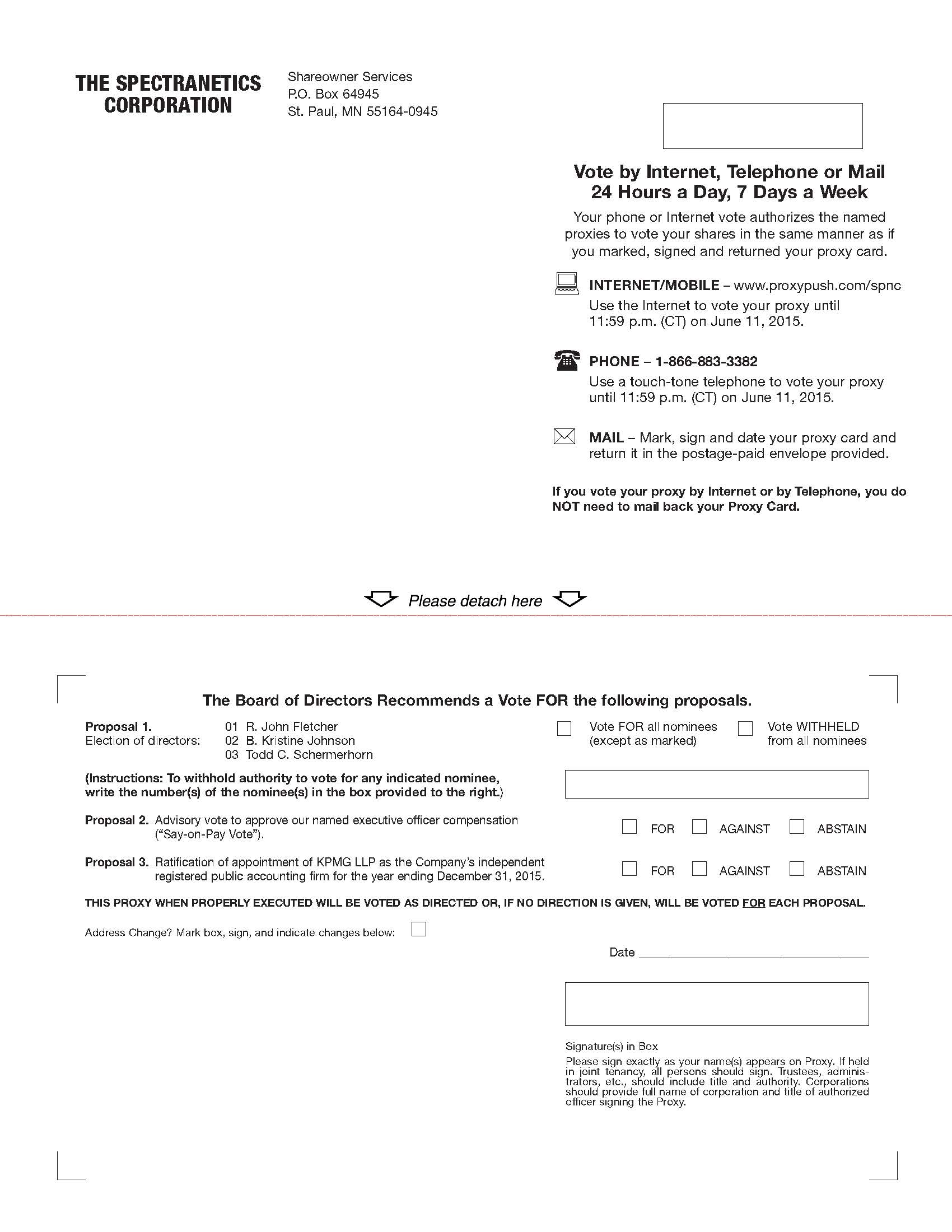 This Proxy Statement and our Annual Report for the year ended December 31, 2014 are available on our website at www.spectranetics.com/investor-relations/.