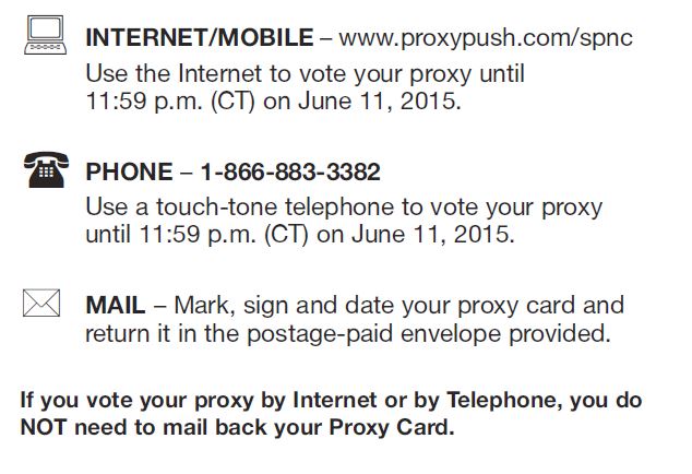 Voting By Telephone Or Through The Internet. If you are a registered stockholder (that is, if you own common stock in your own name and not through a broker, bank or other nominee that holds common stock for your account in a “street name” capacity), you may vote by proxy by using either the telephone or Internet methods of voting. Proxies submitted by telephone or through the Internet must be received by 11:59 p.m., Central Time, on June 11, 2015. Please see below and in the proxy card provided to you for instructions on how to access the telephone and Internet voting systems. If your shares of common stock are held in “street name” for your account, contact your broker, bank or other nominee to determine if you may vote by telephone or through the Internet.
