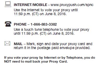 Voting By Telephone Or Through The Internet. If you are a registered stockholder (that is, if you own common stock in your own name and not through a broker, bank or other nominee that holds common stock for your account in a “street name” capacity), you may vote by proxy by using either the telephone or Internet methods of voting. Proxies submitted by telephone or through the Internet must be received by 11:59 p.m., Central Time, on June 8, 2016. Please see below and in the proxy card provided to you for instructions on how to access the telephone and Internet voting systems. If your shares of common stock are held in “street name” for your account, contact your broker, bank or other nominee to determine if you may vote by telephone or through the Internet.