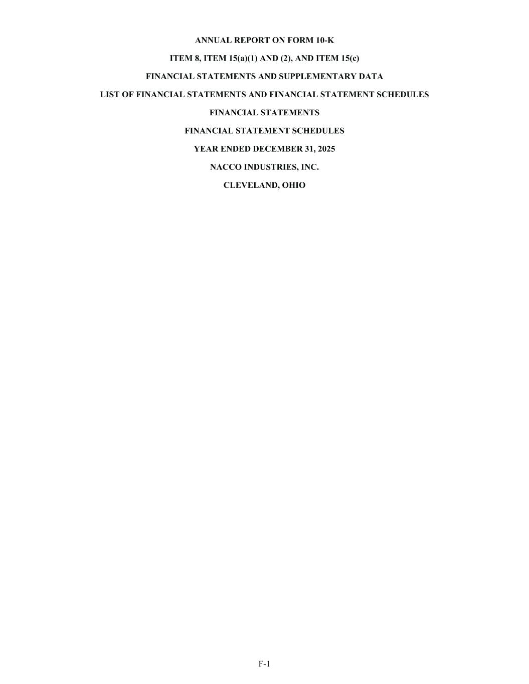 ANNUAL REPORT ON FORM 10-K ITEM 8, ITEM 15(a)(1) AND (2), AND ITEM 15(c) FINANCIAL STATEMENTS AND SUPPLEMENTARY DATA LIST OF FINANCIAL STATEMENTS AND FINANCIAL STATEMENT SCHEDULES FINANCIAL STATEMENTS FINANCIAL STATEMENT SCHEDULES YEAR ENDED DECEMBER 31, 2025 NACCO INDUSTRIES, INC. CLEVELAND, OHIO F-1