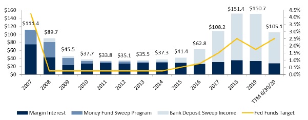 The Federal Reserve Bank implemented a series of increases in its benchmark short-term interest rate between December 2015 and December 2018. These increases in short-term interest rates had a significant positive impact on our overall financial performance, as we offered programs to our clients (for the investment of short-term funds as well as margin loans) which are sensitive to changes in interest rates. Given the relationship of our interest-sensitive assets to liabilities, increases in short-term interest rates generally result in an overall increase in our net earnings. While clients’ domestic cash sweep balances had decreased over the past several years as clients increased their allocations to other investments, that trend reversed in the most recent quarter as market volatility drove client assets into our short-term cash sweep program and other “safe haven” assets. While the Federal Reserve increased short-term interest rates over the last few years, market deposit rates paid on client cash balances were not impacted to as great a degree, resulting in an increase in fees we earned from FDIC insured deposits of clients through a program offered by us. Decreases in short-term interest rates, increases in deposit rates paid to clients, and/or a significant decline in our clients’ cash balances have a negative impact on our earnings. Over the past twelve months, the Federal Reserve has reduced its benchmark rate a number of times including during two separate unscheduled meetings in March 2020, when the Federal Reserve lowered short-term interest rates by a total of 1.50%. Accordingly, our earnings during the first and second quarters of 2020 were negatively impacted by such decreases. The impact will continue to be significant in future periods as these indicative rates flow through the system. As of June 30, 2020, the FDIC-insured Bank Deposit program had a balance of $6.3 billion and customer margin debits were $844 million.