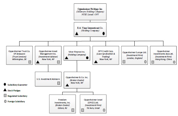 We, through our Operating Subsidiaries, are a leading middle-market investment bank and full service broker-dealer. With roots tracing back to 1881, we are engaged in a broad range of activities in the financial services industry, including retail securities brokerage, institutional sales and trading, investment banking (both corporate and public finance), equity and fixed income research, market-making, trust services and investment advisory and asset management services. We own, directly or through our subsidiaries, Oppenheimer & Co. Inc. (“Oppenheimer”), a New York-based securities broker-dealer and investment adviser, Oppenheimer Asset Management Inc. (“OAM”), a New York-based investment adviser, Freedom Investments, Inc. (“Freedom”), a discount securities broker-dealer based in New Jersey, Oppenheimer Trust Company (“Oppenheimer Trust”), a Delaware limited purpose bank and OPY Credit Corp. (“OPY Credit”), a New York corporation organized to trade and clear syndicated corporate loans. We conduct our international businesses through Oppenheimer Europe Ltd. (United Kingdom, with offices in the Isle of Jersey, Germany and Switzerland), Oppenheimer Investments Asia Limited (Hong Kong), and Oppenheimer Israel (OPCO) Ltd. (Israel) (“OIL”).