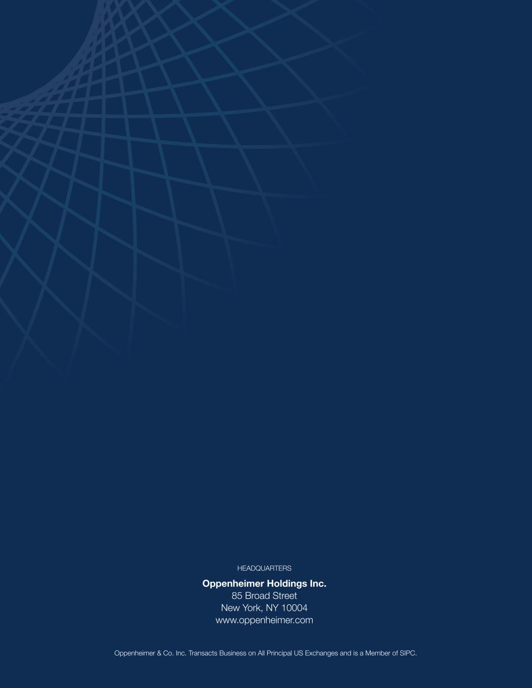 HEADQUARTERS Oppenheimer Holdings Inc. 85 Broad Street New York, NY 10004 www.oppenheimer.com Oppenheimer & Co. Inc. Transacts Business on All Principal US Exchanges and is a Member of SIPC.