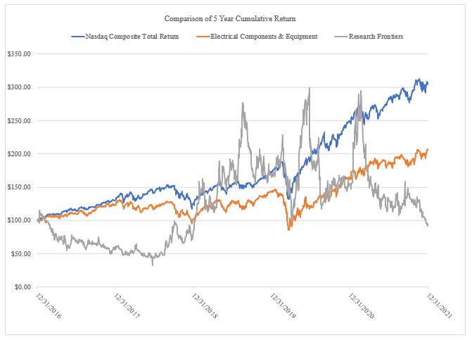 The following graph compares the total returns (assuming reinvestment of dividends) on $100 invested on December 31, 2016 in the Common Stock (REFR), the NASDAQ Composite Index and the NASDAQ Electronic Components and Equipment Index. The stock price performance shown on the graph below reflects historical data and is not necessarily indicative of future price performance.