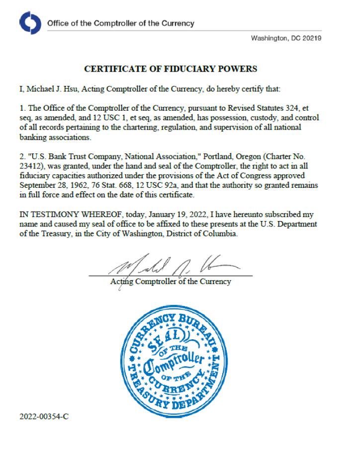 OF U. S. BANK TRUST COMPANY, NATIONAL ASSOCIATION